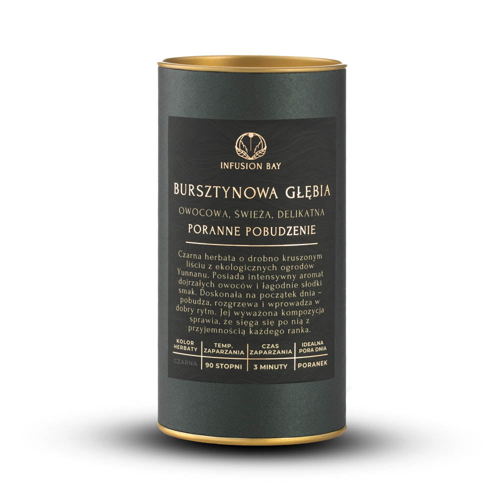 Napar ma głęboki, bursztynowy kolor i naturalny, świeży aromat. W smaku Bursztynowa Głębia jest harmonijna – owocowa, lekko miodowa, z delikatnym, miękkim finiszem. Każdy łyk niesie uczucie równowagi między mocą a subtelnością, między energią a spokojem. To herbata, która staje się codziennym rytuałem porannego skupienia i przyjemności.