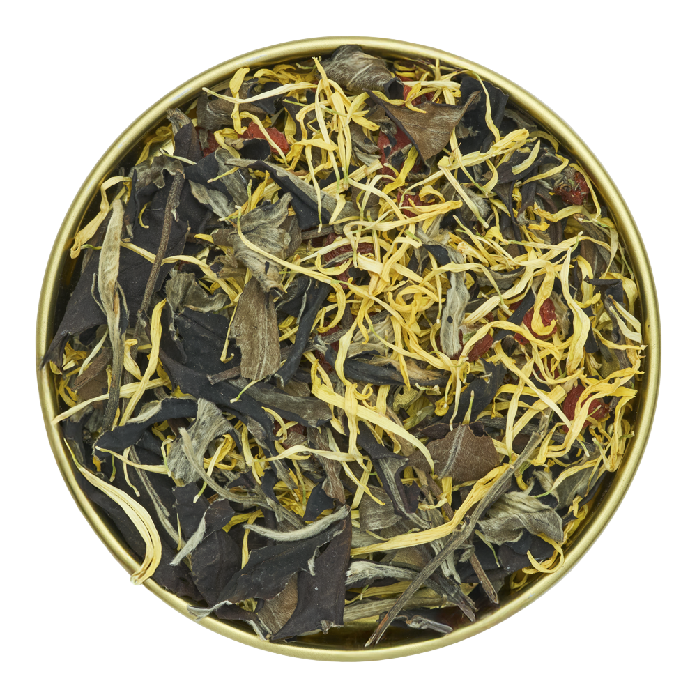 Herbata pochodzi z prowincji Yunnan, serca chińskiej tradycji herbacianej i regionu słynącego z wielowiekowych drzew herbacianych. Kluczowym składnikiem tej kompozycji są jednak jagody goji z Ningxia — regionu uznawanego za absolutną kolebkę najwyższej jakości owoców, gdzie słoneczny, suchy klimat tworzy ich intensywny smak i wyjątkową wartość.