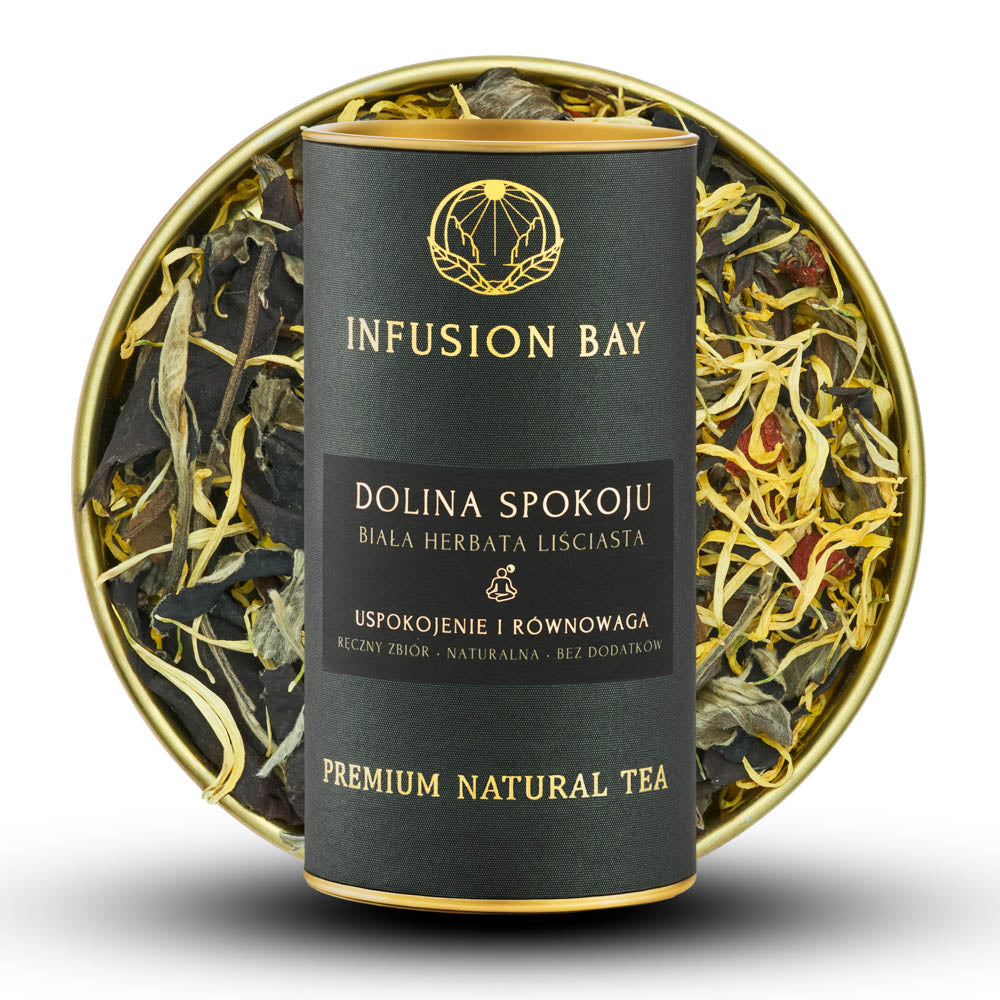 Zaparz łyżeczkę Doliny Spokoju w wodzie o temperaturze 80°C i pozwól, by kwiaty i owoce powoli się otworzyły, uwalniając aromat chryzantemy i goji. Obserwuj, jak napar nabiera barwy złotego światła i wypełnia przestrzeń spokojem. Weź łyk – poczuj, jak napięcie ustępuje, a oddech staje się głębszy. To herbata, która zamyka dzień łagodnie, w rytmie natury, przywracając równowagę i ciepło.