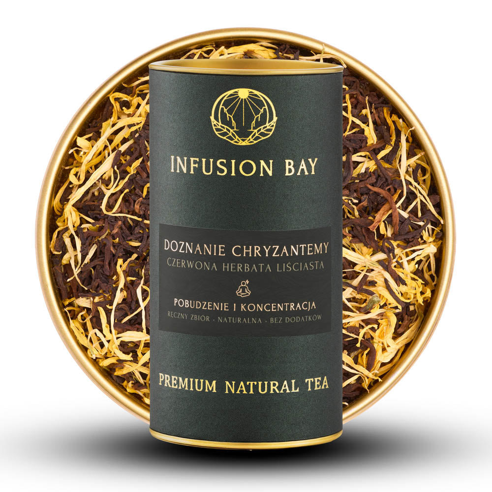 Zaparz łyżeczkę Doznania Chryzantemy w wodzie o temperaturze 95°C i pozwól, by liście Pu’era i kwiaty chryzantemy otworzyły się powoli. Obserwuj, jak napar nabiera ciepłego, złocistego odcienia, a powietrze wypełnia się delikatnym, kwiatowym zapachem. Weź łyk – poczuj harmonię między siłą a łagodnością. To herbata, która wprowadza klarowność, porządkuje myśli i pozwala rozpocząć dzień w rytmie uważności.