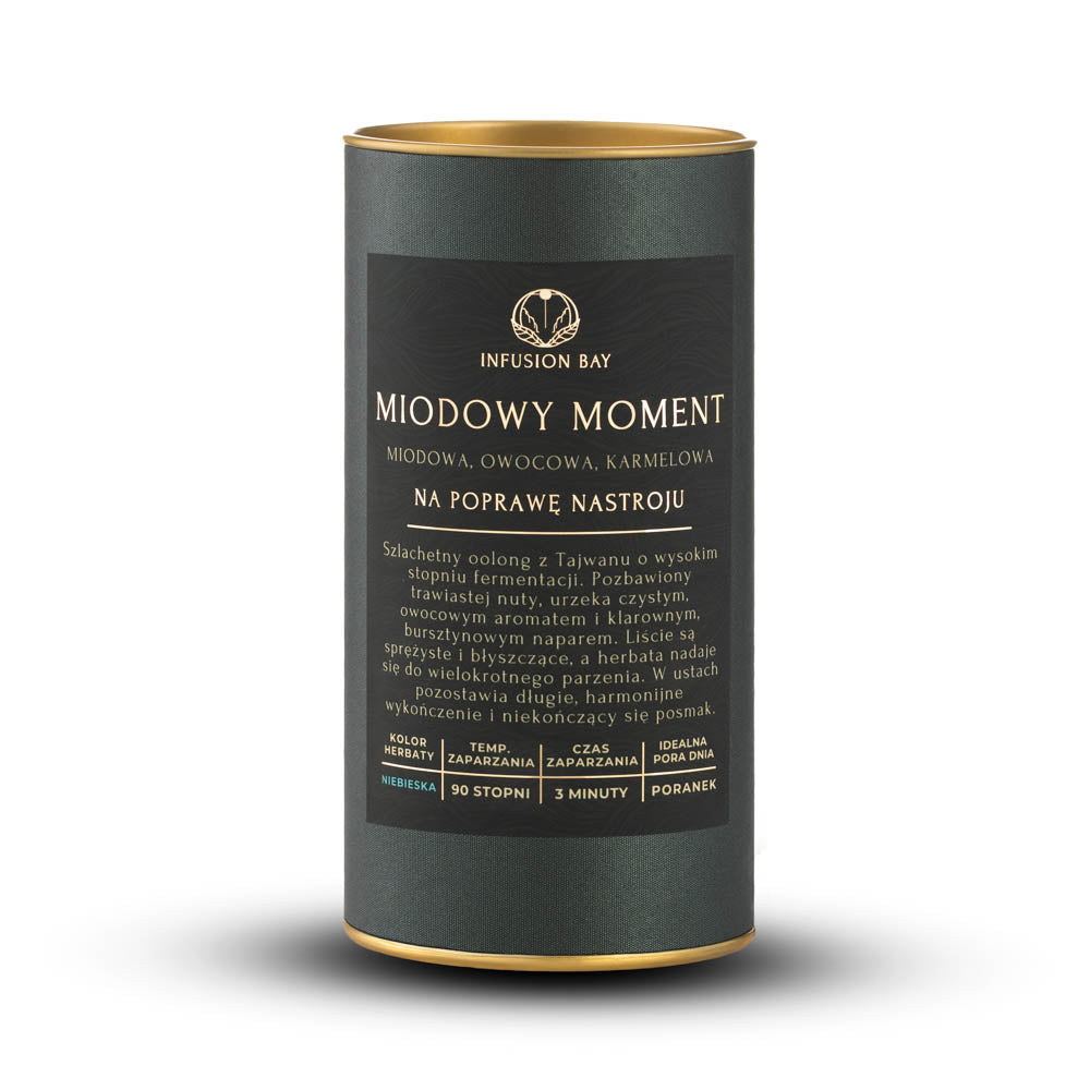 Po zaparzeniu napar lśni barwą jasnego bursztynu. W aromacie pojawia się delikatna słodycz miodu, karmelu i dojrzałych owoców, przełamana kwiatowym akcentem. Smak jest czysty, łagodny i złożony – rozwija się powoli, pozostawiając długie, harmonijne wykończenie. Miodowy Moment nie tylko poprawia nastrój, ale też uspokaja i dodaje ciepłej energii, której nie da się pośpieszyć.
