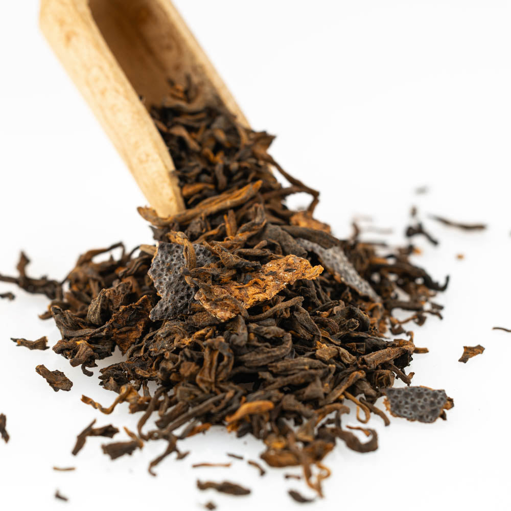 Z południowego Yunnanu, gdzie powietrze wypełnia zapach tropikalnych lasów i dojrzewających cytrusów, pochodzi herbata o wyjątkowej głębi – Pomarańczowe Wzgórze. To luksusowa kompozycja dojrzałej herbaty Pu’er i starannie dobranej skórki mandarynki Xinhui, znanej w Chinach jako „stulatni żeń-szeń”. W procesie suszenia obie esencje przenikają się aromatem – głęboki, ziemisty charakter Pu’era zostaje przełamany świeżą, cytrusową nutą, tworząc napar o doskonałej równowadze między ciepłem i lekkością.
