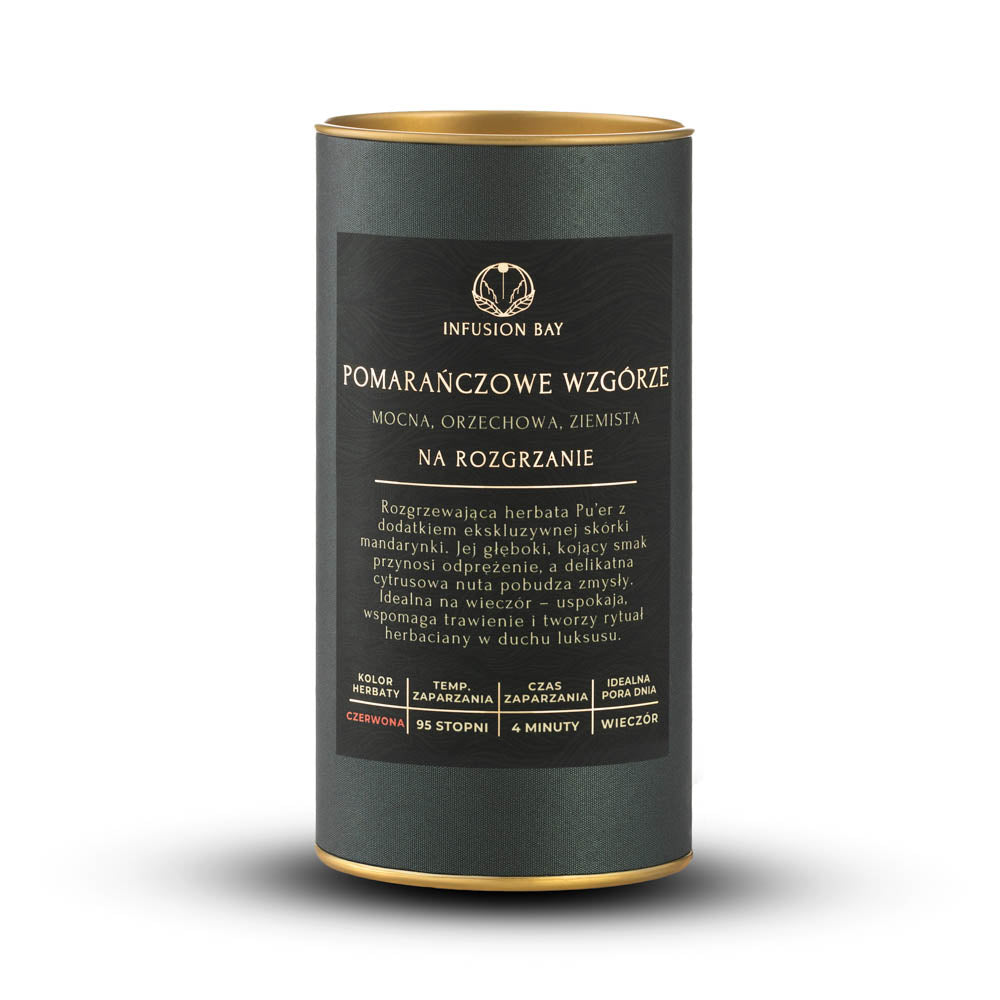 Zaparz łyżeczkę Pomarańczowego Wzgórza w wodzie o temperaturze 95°C i pozwól, by liście Pu’era i mandarynkowa skórka uwolniły aromat cytrusów i ziemi. Obserwuj, jak napar nabiera barwy zachodzącego słońca. Weź łyk – ciepły, łagodny, pełen harmonii. To herbata, która otula jak miękki koc – symbol spokoju, elegancji i wieczornego ukojenia.