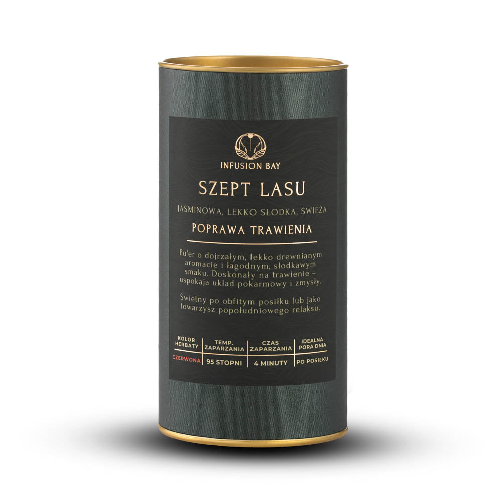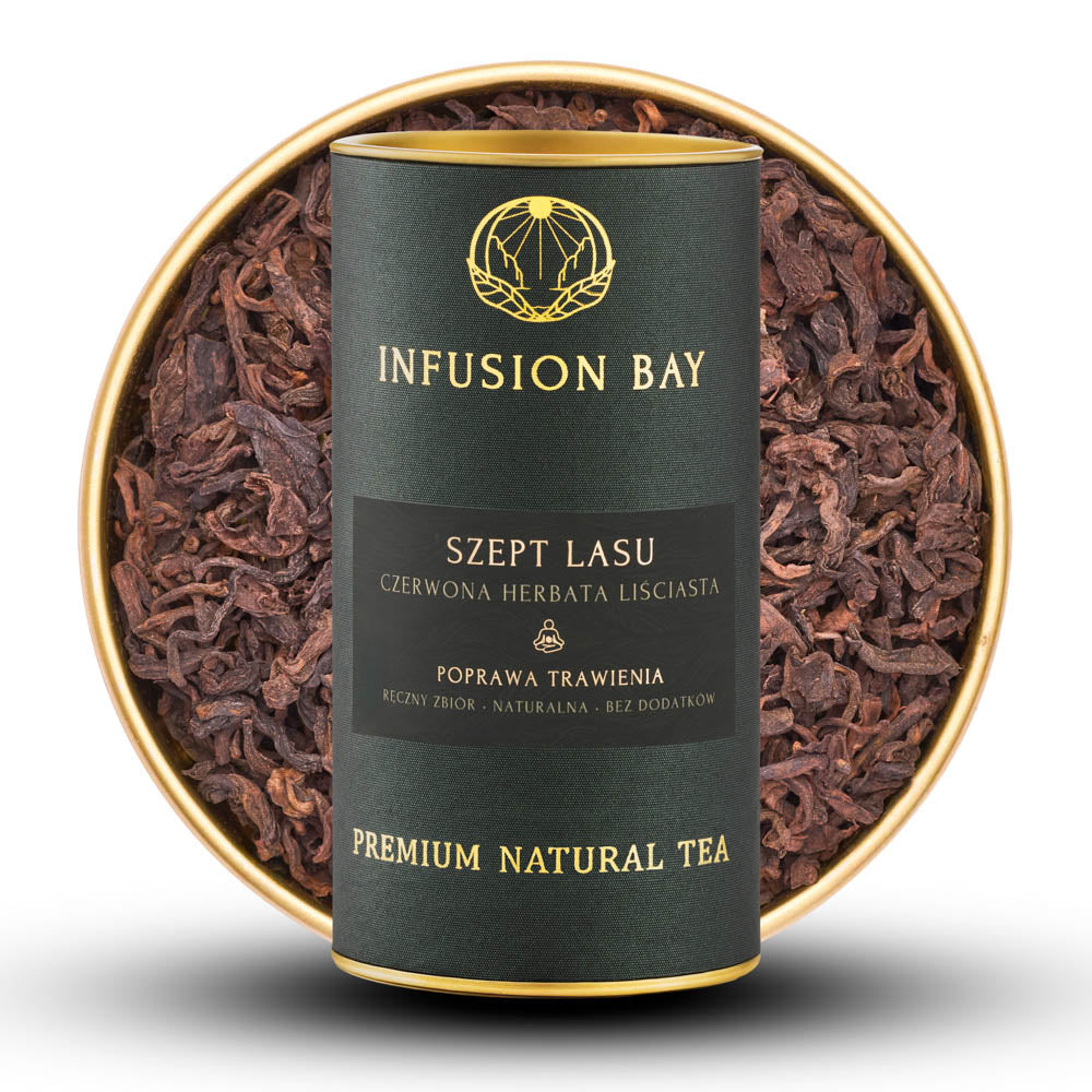 Po zaparzeniu napar przybiera barwę bursztynu z nutą czerwieni, a jego aromat łączy zapach drewna, ziemi i delikatnych kwiatów. W smaku Szept Lasu jest łagodny, pełny i zrównoważony – nieco słodki, z miękkim, lekko jaśminowym wykończeniem. To herbata stworzona do spokoju – wspiera trawienie, relaksuje i pozwala ciału odnaleźć naturalny rytm po obfitym posiłku.