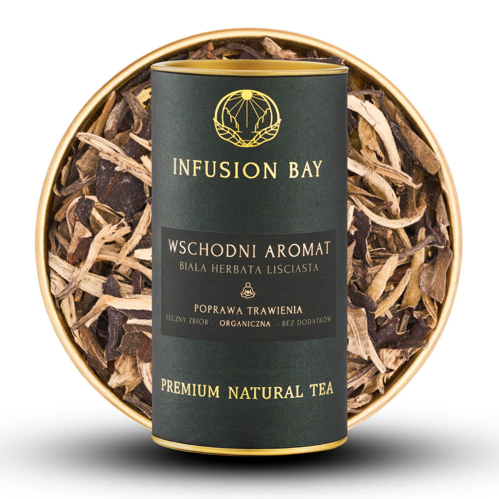 Po zaparzeniu napar stopniowo zmienia barwę – od jasnożółtej po ciepły bursztyn. W aromacie pojawiają się nuty owoców i zielonych liści, otulone subtelną słodyczą. W smaku Wschodni Aromat jest miękki, czysty i niezwykle zbalansowany – delikatnie pobudza, wspiera trawienie i koi zmysły. Każdy łyk to doświadczenie harmonii – spokojne, powolne, jak wdech w ciszy poranka.